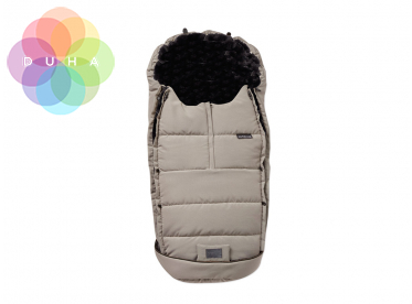 Zadní strana je ušita z protiskluzového pogumovaného materiálu, takže se fusak ve sportovním kočárku neposunuje směrem dolů. Dítě poutáte do kočárku společně s fusakem.
