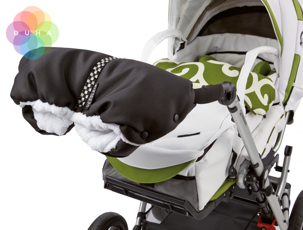 Praktický doplněk pro každý kočárek, vhodný pro chladné i mrazivé období. Rukávník je vyroben z jeho vnitřní strany z hřejivého materiálu imitace beránka a z vnější strany z voděodolné textilie. Lze jej jednoduše zapnout na rukojeť kočárku pouze pomocí patentů. Rukávník je dodáván v barevném provedení vnější textilie v černé, bílé, hnědé, koňakové a šedé. Rukávník je vhodný pro všechny kočárky GESSLEIN. Rukávník lze připínat a bez problémů používat i na rukojeti kočárků GESSLEIN, které jsou vybaveny přídavnou ruční brzdou na přibrzďování kočárku při jízdě z kopce. V tomto případě je brzda schovaná uvnitř rukávníku.