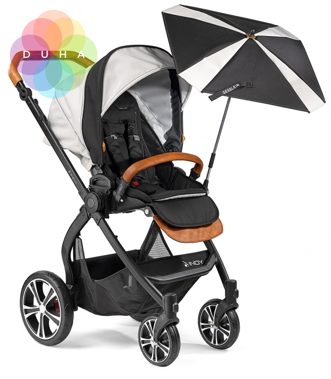 Slunečník je vyráběn ve všech barevných kombinacích designu INDY, takže celý kočárek je vždy dokonale sladěný.