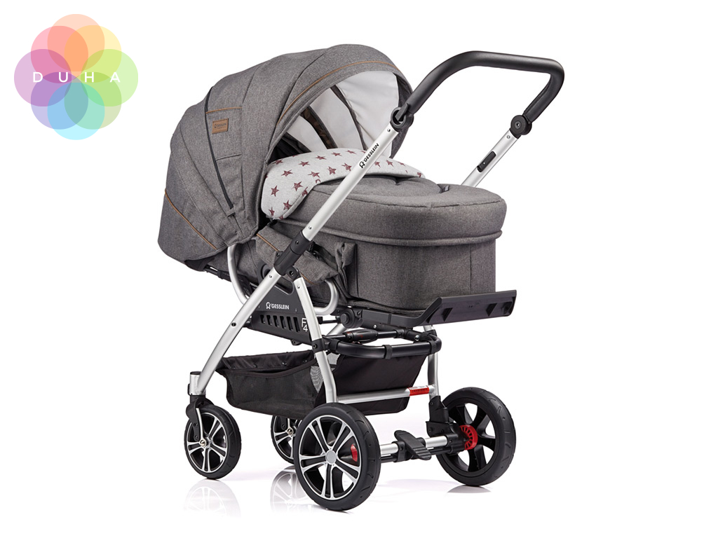 - Ke kočárku GESSLEIN F4 + C2-Lift si můžete přikoupit dětskou bezpečnostní autosedačku GESSLEIN Baby Go a můžete kočárek používat již od narození miminka – autosedačku lze „nacvakávat“ na konstrukci kočárku GESSLEIN F4.