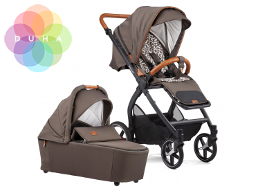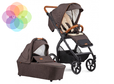 • Další možností výbavy je vyměnitelná přední náprava s velkými ložiskově uloženými koly – tento systém je vynikající pro jízdu v terénu nebo ve sněhu – nebudete pro své dítě potřebovat 2 různé kočárky do různých terénů, ale pouze si vyměňujete kola. Konstrukce kočárku má velice dobře vypočítané těžiště a prodlouženou rukojeť s možností jejího naklopení – rukojeť se dá velice snadno nastavit do ideální pozice vzhledem k výšce rodiče, takže se s kočárkem výborně jezdí.