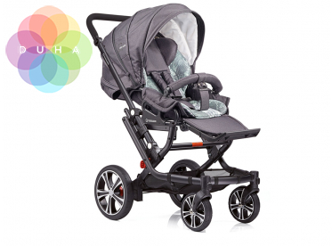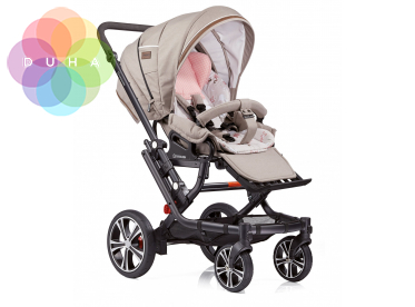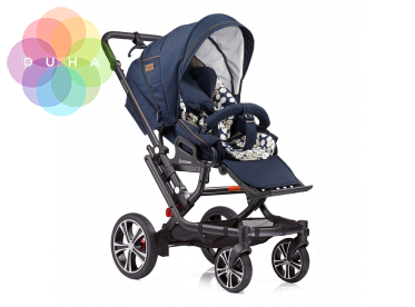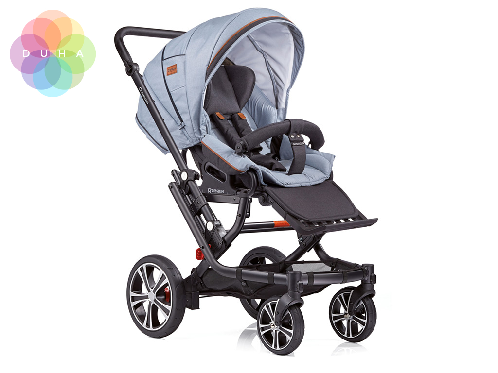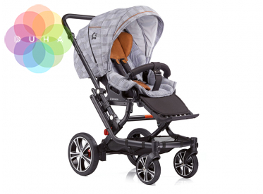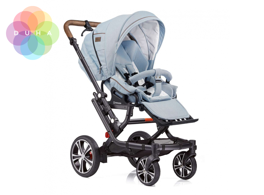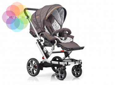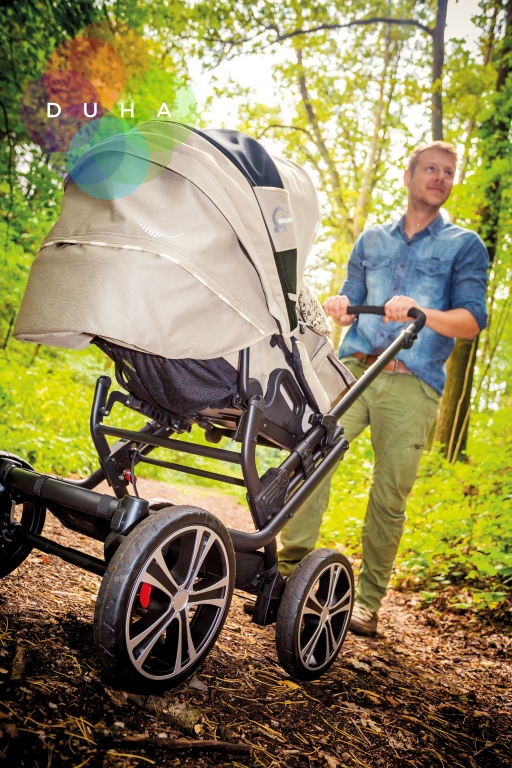 Tyto luxusní terénní dokonale odpružené čtyřkolky mají možnost „nacvaknutí“ hluboké i sportovní nástavby po i proti směru jízdy ale jsou také vybaveny přehazovací rukojetí a boudička kočárku je vybavena okénkem, kapsou a kšiltem proti slunci, zadní část boudičky můžete jednoduše odepnout a vrchní část pak používat jako sluneční střechu – kočárek je v této podobě velice dobře klimatizovaný v horkém letním počasí.