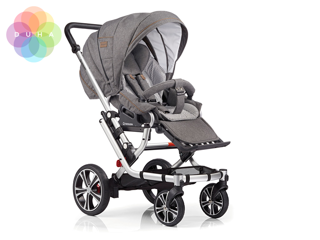 Kočárek GESSLEIN F6 Vám poslouží v kombinaci s luxusní transportní taškou C-Lift a originál hlubokou „U“ nástavbou a nánožníkem na sportovní verzi pro to nejmenší miminko a později jako sedačka pro větší děti, takže již nebudete žádný jiný kočárek pro své dítě potřebovat.